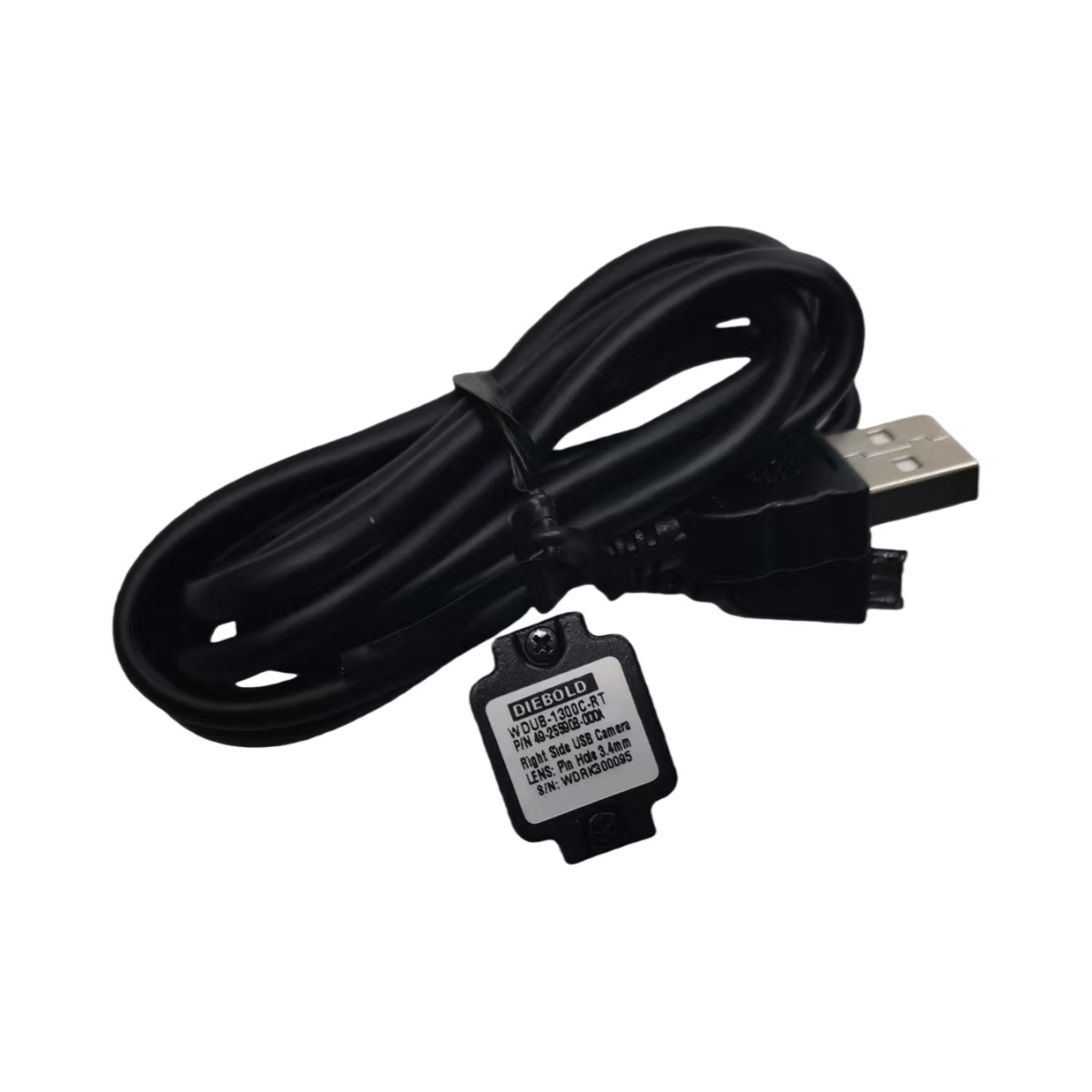 Diebold WDUB-13DDC-RT Micro Camera – Nuova originale, connettore USB lato destro. Questa telecamera ATM dedicata è un componente originale Diebold, identificato dal codice articolo 49255908000A e dal numero di serie WDRI300095, garantendo originalità e garanzia di qualità.